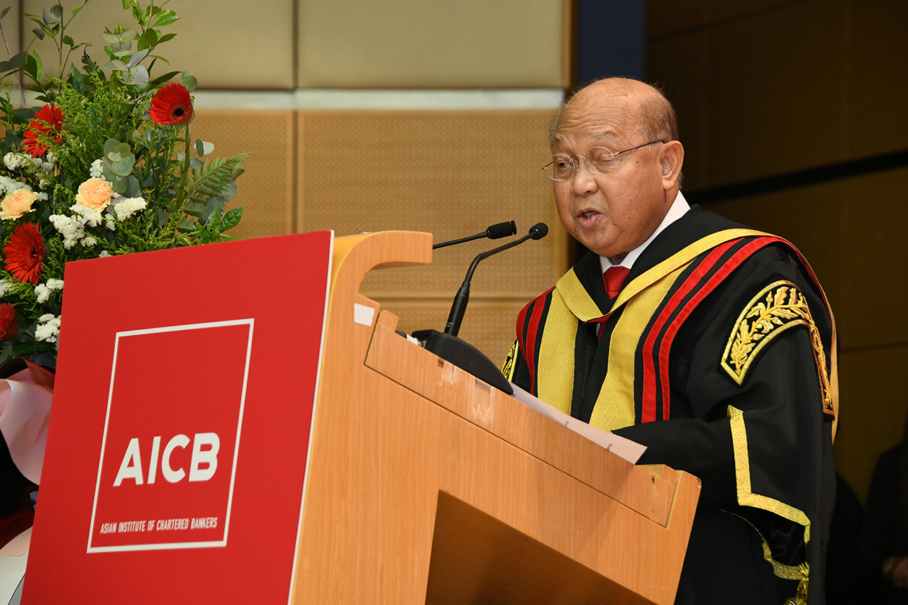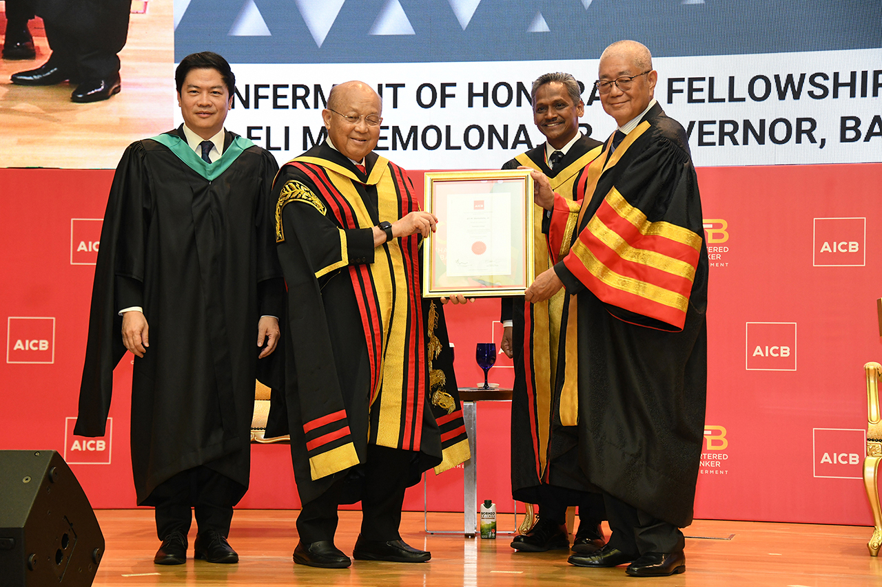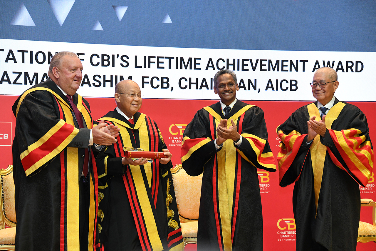 A standout moment was the presentation of the Lifetime Achievement Award by the Chartered Banker Institute (CBI) to Tan Sri Azman Hashim, FCB, for his remarkable contributions to the industry. AICB also awarded Governor Eli M. Remolona, Jr. of Bangko Sentral ng Pilipinas, with an Honorary Fellowship for his leadership and impact on ASEAN banking. The ceremony ended on a high with a pledge to uphold AICB’s Code of Professional Conduct, led by the Chairman.